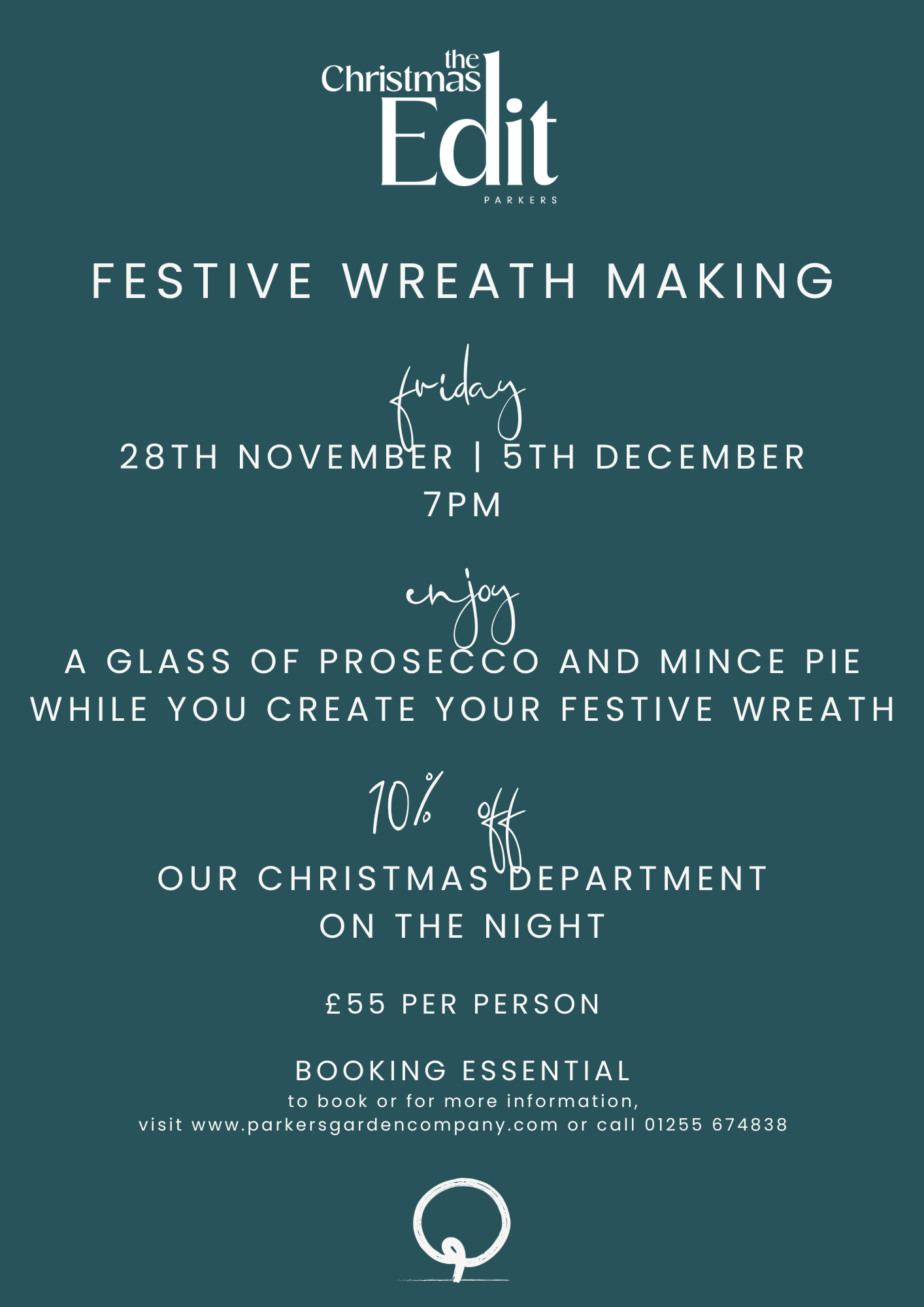 Step into the Christmas season and join us for a creative and cosy evening of Festive Wreath Making, hosted by the talented Autumn Lane Flowers. Sip on a chilled glass of Prosecco and indulge in a delicious Mince Pie while you get creative, designing and creating your Festive Wreath to take home…
