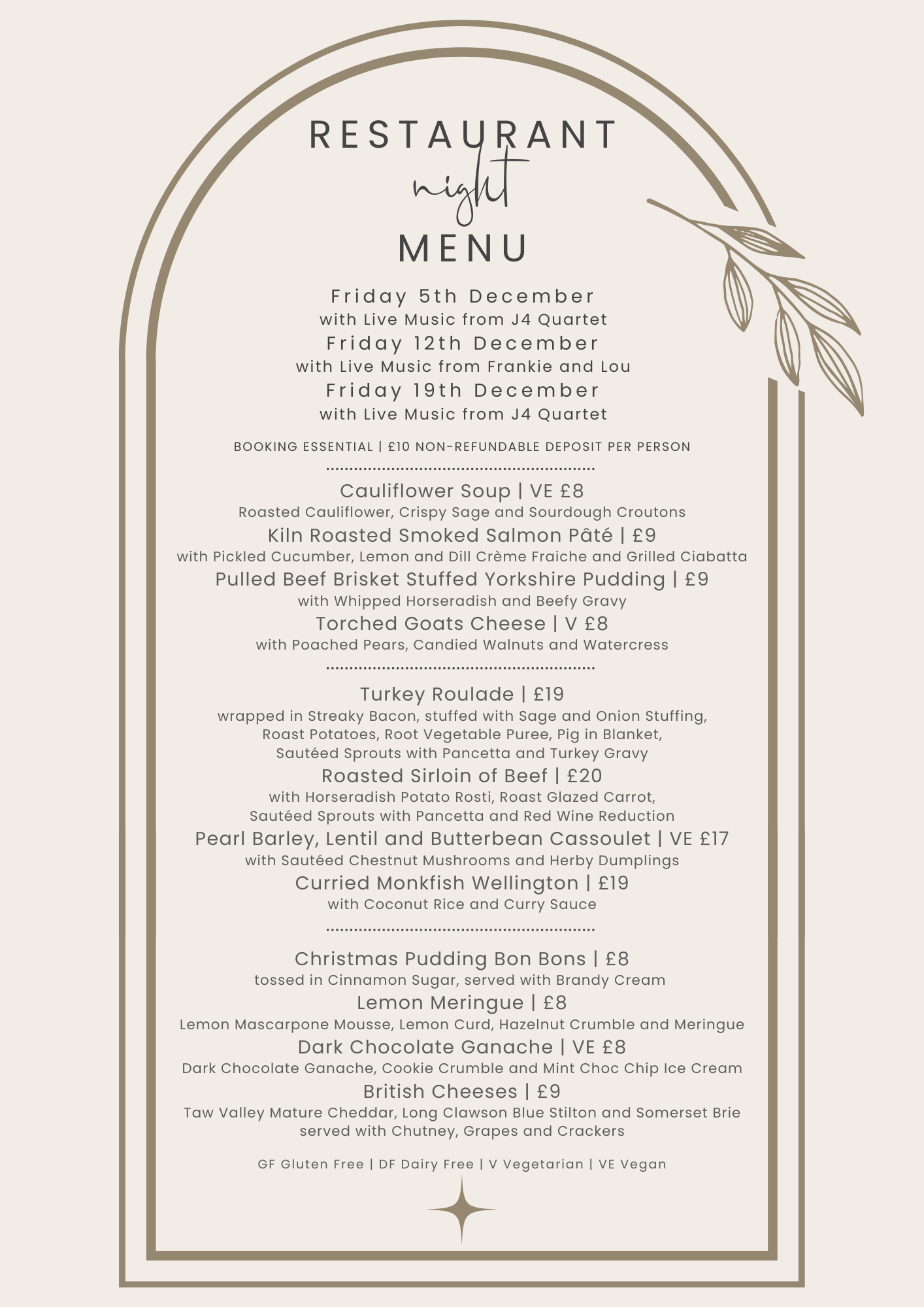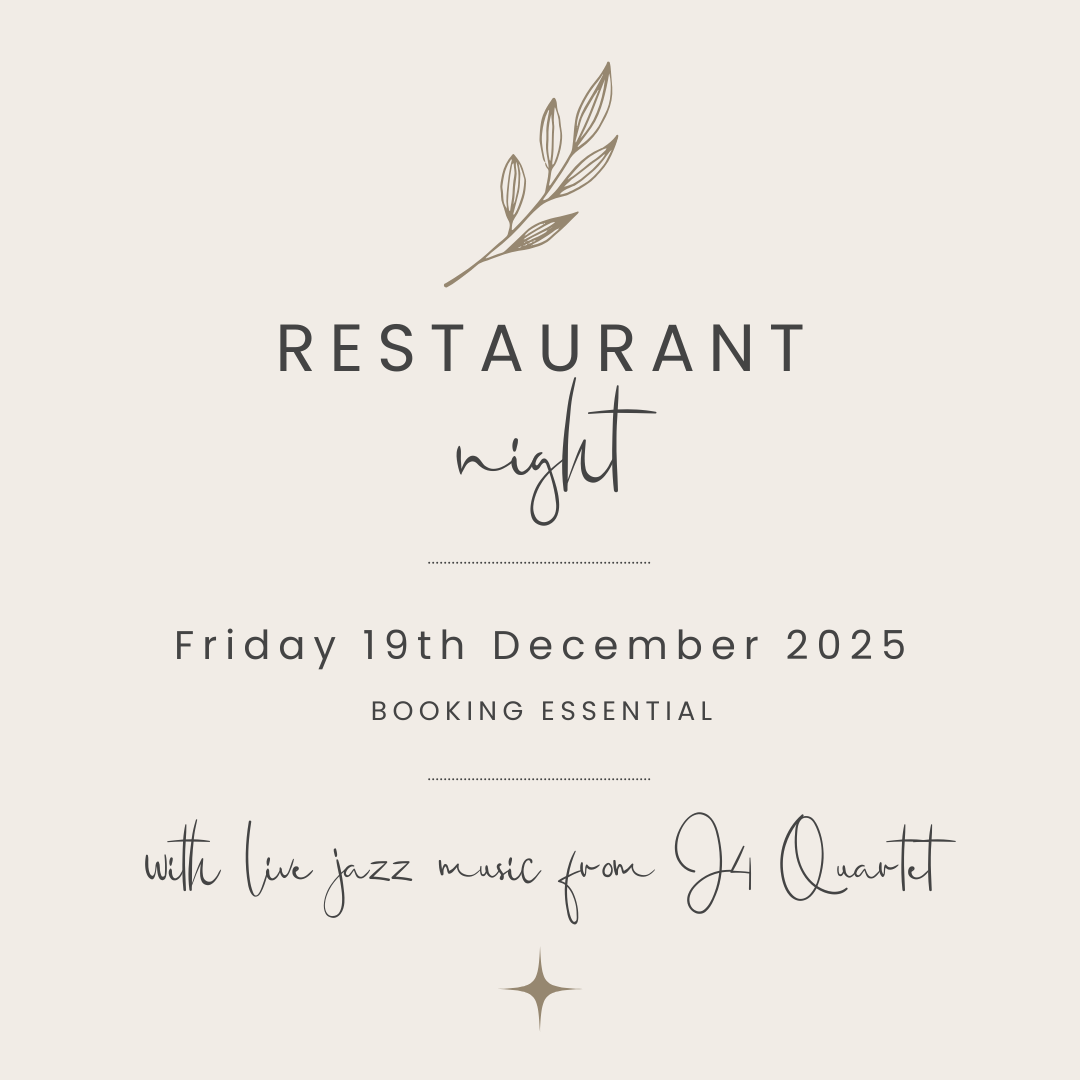 Join us on Friday 19th December 2025, from 6pm, and treat yourself to our exquisite menu, expertly crafted by our Head Chef and accompanied by live jazz music from J4 Quartet.