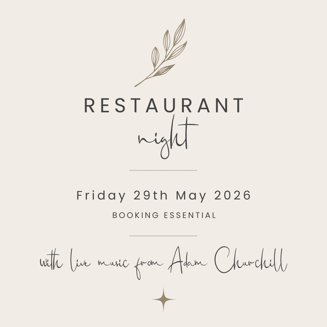 Join us on Friday 24th April, from 6pm, and treat yourself to our exquisite menu, expertly crafted by our Head Chef and accompanied by live music from Adam Churchill.
