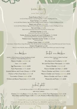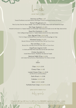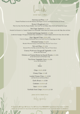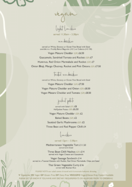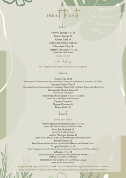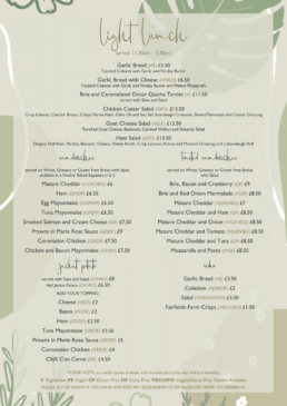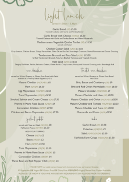 Please note our light lunch options are available until 3.30 pm. Please click on the menu for details.